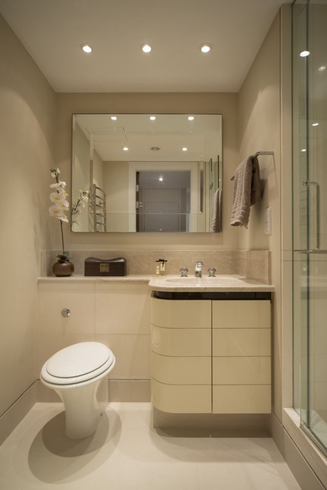 Если вы ищете компактные идеи для небольших ванных комнат, стоит задуматься о создании правильного освещения. Встроенные светильники позволяют даже самым маленьким и узким комнатам казаться намного больше. Естественный свет, проникающий через большое окно, несомненно, является оптимальным решением. Ванные комнаты без окон также могут сильно преображаться при соответствующем освещении. Например, замените отдельные большие светильники несколькими точками на потолке, пустите освещение на уровне пола, которое будет выглядеть великолепно. При входе в комнату происходит освещение всех нужных мест, придавая ощущение большего пространства.