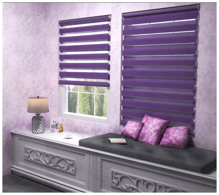Недавно появилась еще одна модель — двойная римская штора или «день-ночь».Он состоит из двух, независимо управляемых полотен: плотного и прозрачного. Естественное освещение регулируют сдвигом их относительно друг друга и фиксацией в определенном положении. Днем плотные полотна поднимаются, и через прозрачную часть штор в комнату проникает световой поток. Вечером плотная часть опускается, и в комнате становится темно. При желании обе части также могут быть подняты или опущены полностью. И самыми популярными сегодня являются двойные римские шторы с электроприводом, но это на порядок больше, чем аналогичные изделия с ручным управлением.