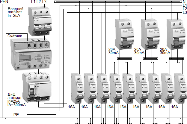 - Основной дифференциальный автомат или устройство защитного отключения.