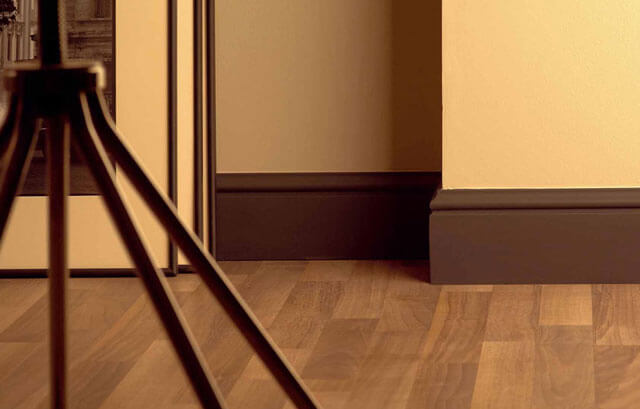 Завершающим этапом отдели помещения является установка плинтусов. Это — последний штрих, который придает интерьеру завершенность. Все чаще, вместо привычных деревянных планок, используется пластиковый напольный плинтус. Он имеет невысокую стоимость, легок в монтаже и уходе.