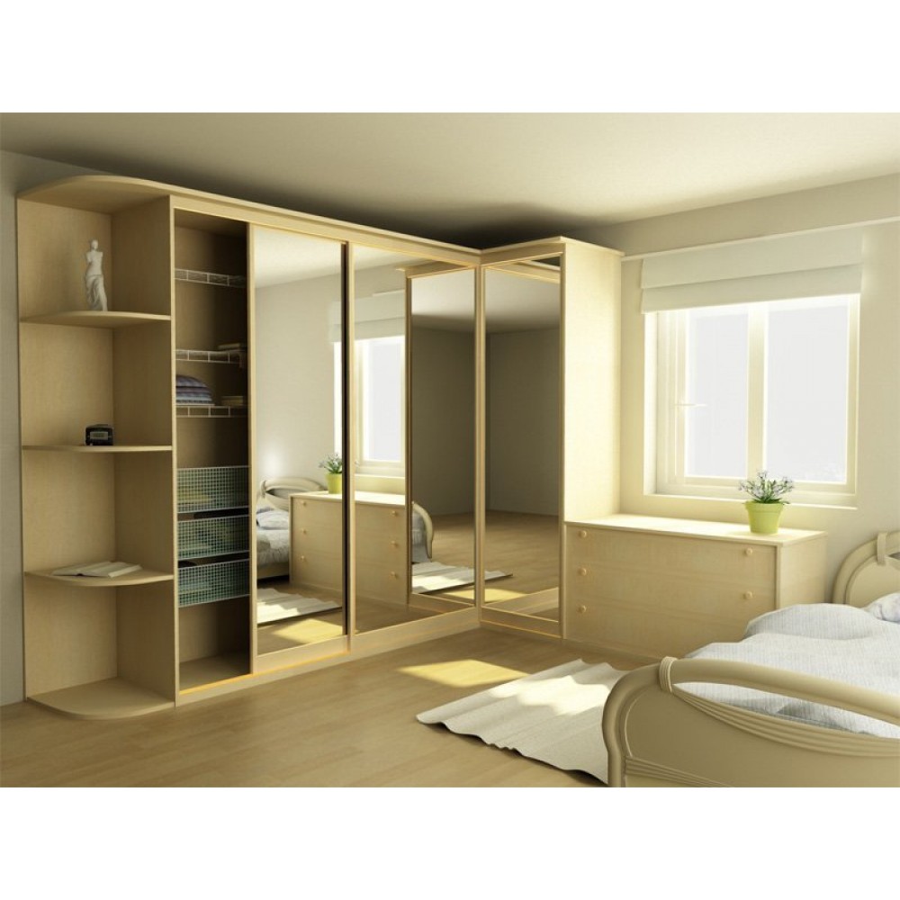 Правда, стоит уточнить, что такой шкаф не впишется в маленькую спальню прямоугольной формы. В остальных же случаях он точно будет уместным. Еще одно преимущество подобного шкафа состоит в том, что его установка обойдется вам в разы дешевле, ведь вам можно будет обойтись без задней и боковой стенки.