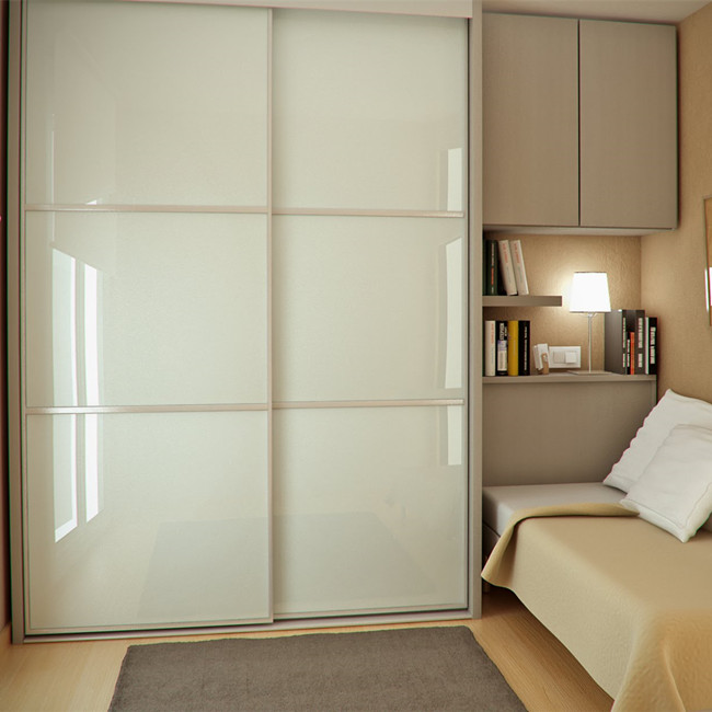 Если вы хотите свести время уборки к минимуму, то сделайте зеркальной не всю стенку, а только одну дверку. Также очень эстетично смотрится шкаф с матовым стеклом. Помимо всего прочего, его поверхность может быть покрыта оригинальными узорами или росписью.