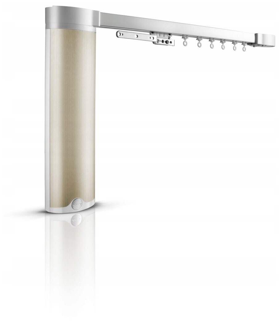 Дистанционный механизм управления шторой основан на использовании электрокарниза, в который встроен радиоприемник.