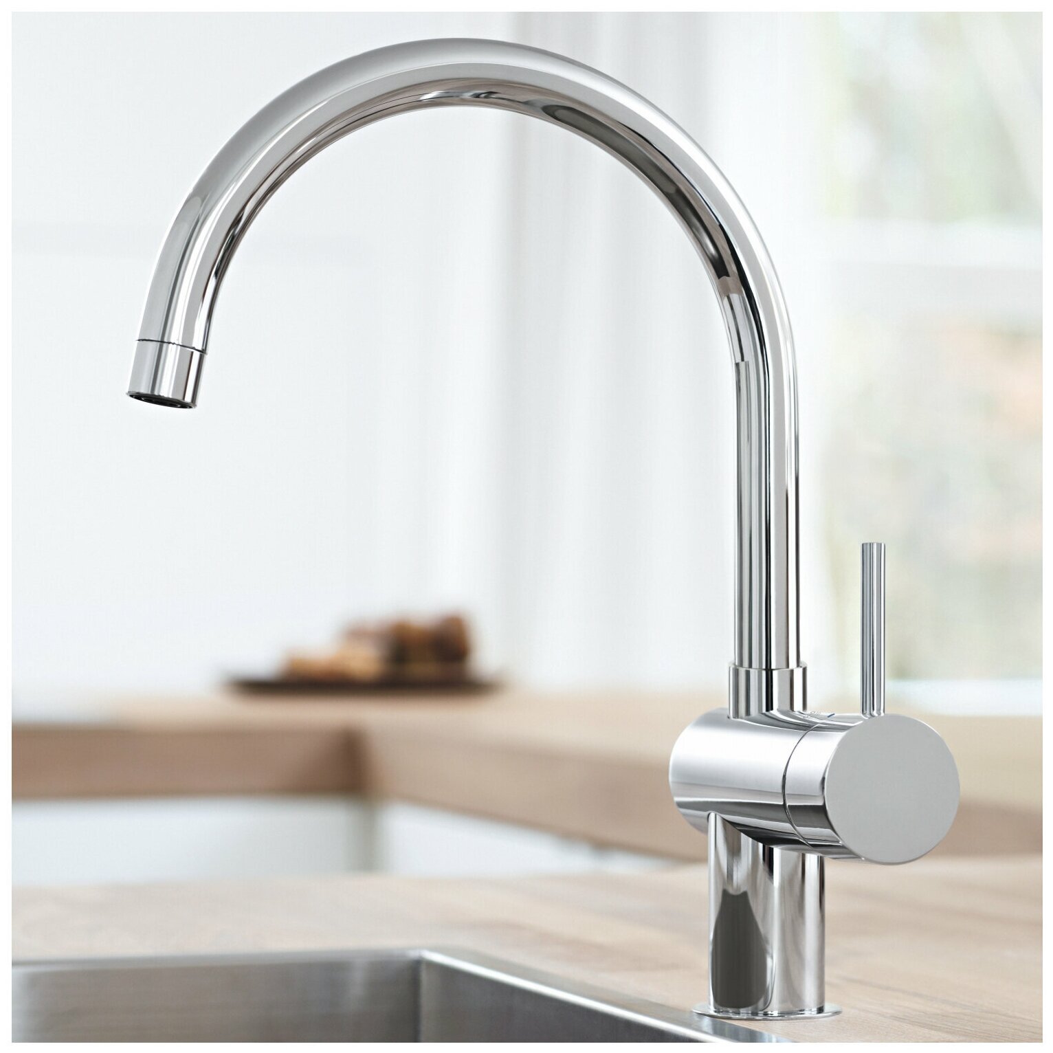 В недорогих кранах угол разворота гусака достигает 140 градусов — в большинстве случаев этого хватает, чтобы с комфортом пользоваться мойкой стандартного размера. В премиальных и люксовых моделях эта характеристика достигает 180 и даже 360 градусов. Такие возможности актуальны для помещений большого размера, оборудованных, например, несколькими чашами или кухонным (островом).