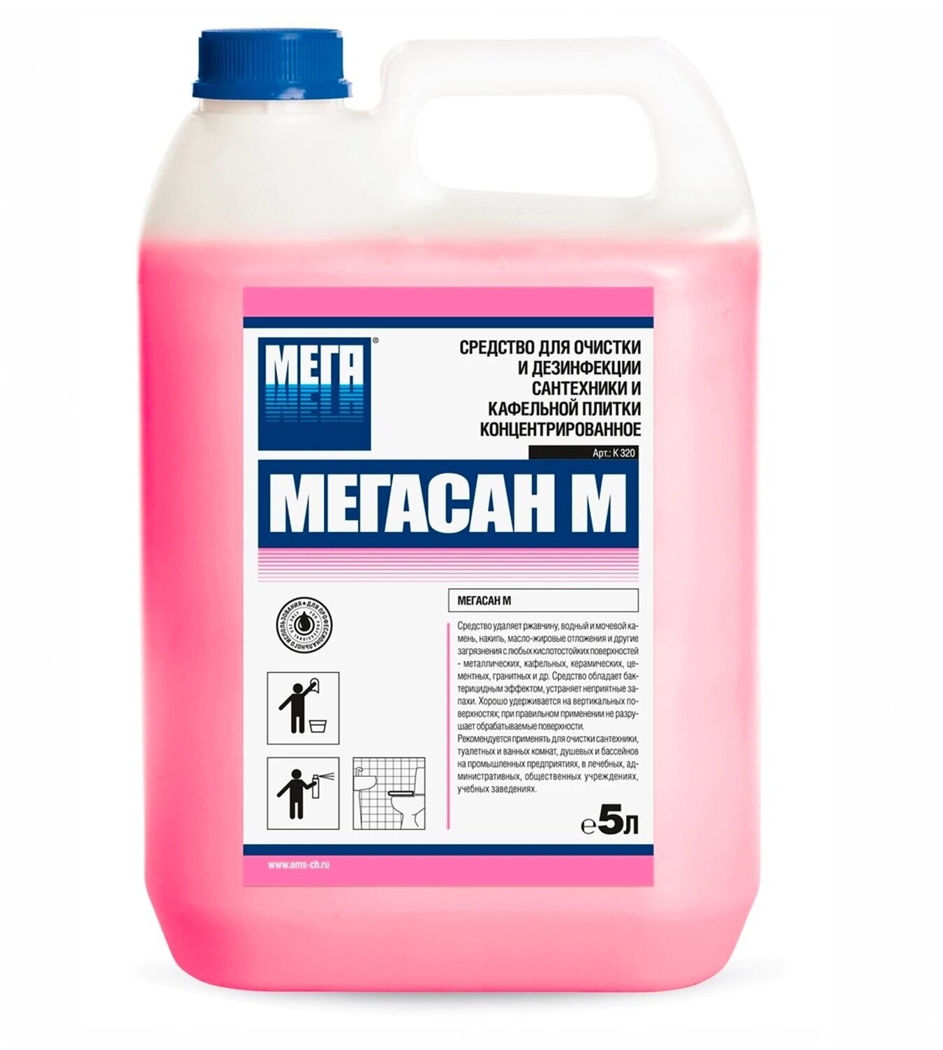 Средство для очистки и дезинфекции сантехники и кафельной плитки МЕГАСАН концентрированное