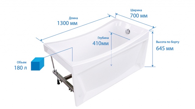 В последнем случае учитывают и длину ножек, на которых стоит ванна. Обычно они имеют регулируемый размер, позволяющий выставить изделие горизонтально.