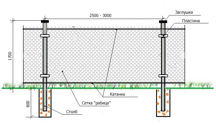 Как натягивать сетку рабицу на столбы