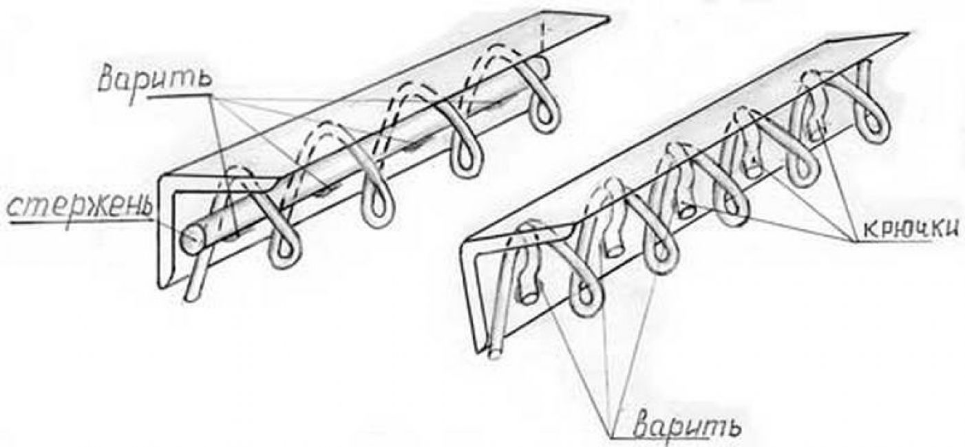 Когда бетонный раствор затвердеет, на стойки для забора приваривают крюки. На них затем производят натяжку сетки. Для чего используют прут, проволоку, гвозди, то есть любой материал, выгибающийся в крючок.