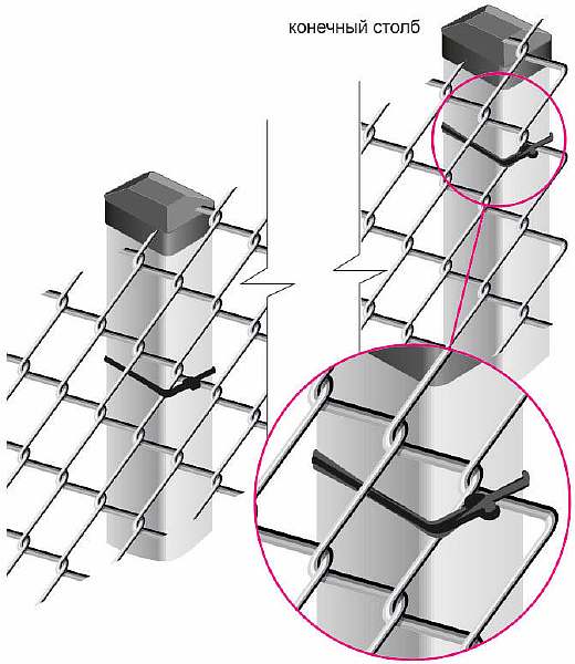 Варианты правильного крепления рабицы