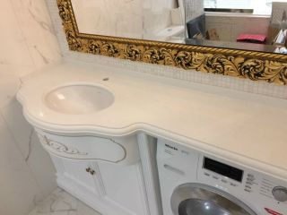 Имеет готовую герметично встроенную раковину на столешнице в ванную комнату, что обеспечивает конструкции высокую гигиеничность.