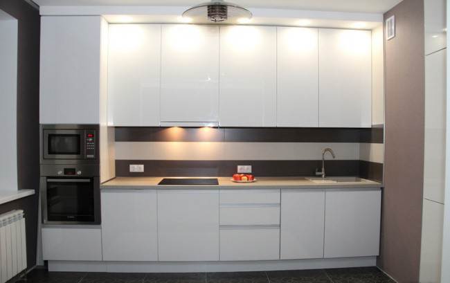 Токоподводящий провод надо прятать за задними стенками кухонных навесных шкафчиков.