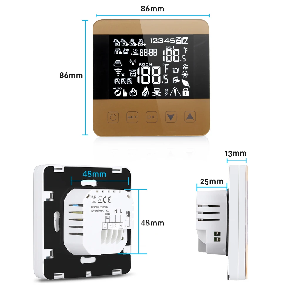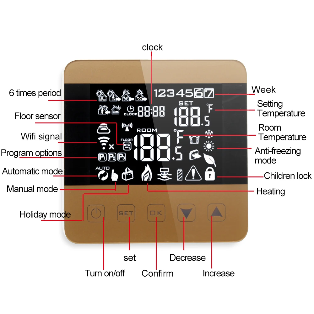 2. Умный термостат Wi-Fi, управляйте своим термостатом отовсюду и в любое время с помощью смартфона.Приложение поддерживает шесть языков: китайский, английский, итальянский, французский, немецкий, испанский.