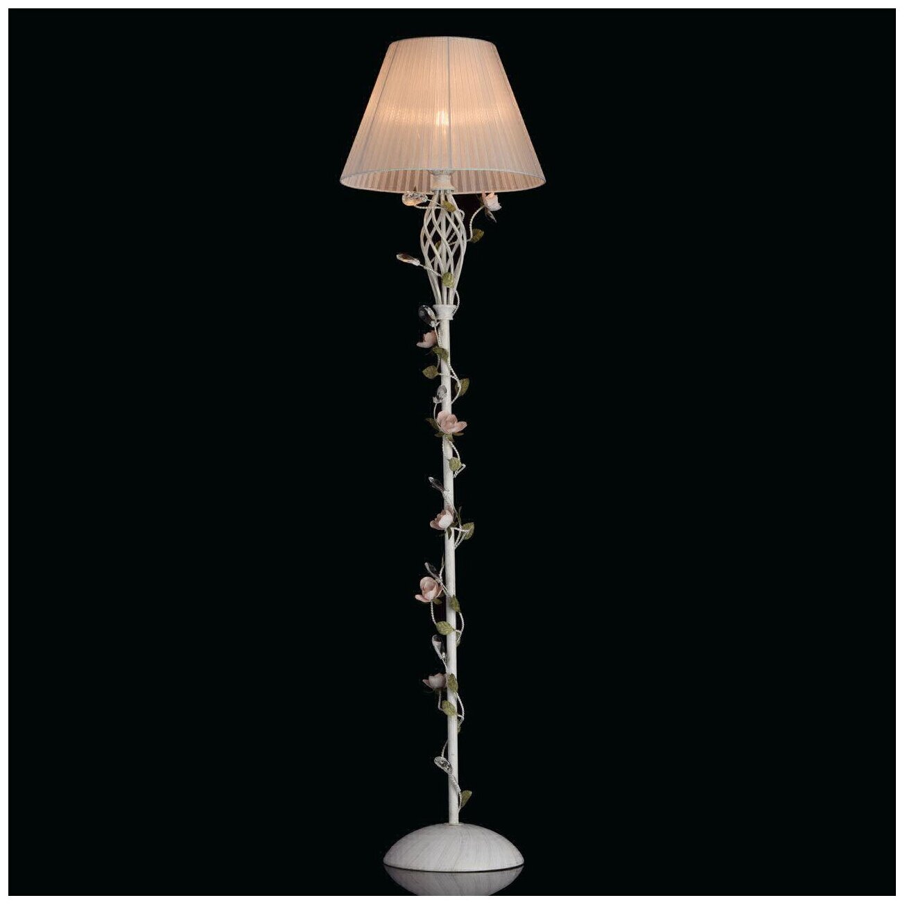 Выше перечислены самые распространённые виды напольных ламп из обработанного металла и изготавливаются они в основном цветочной тематики.