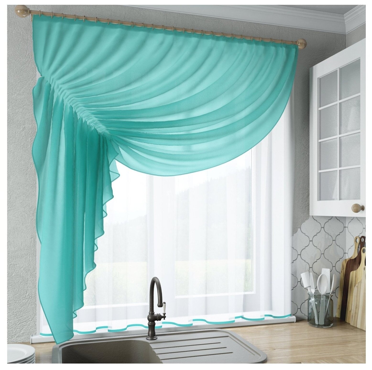 современные кухонные шторы, новинки в виде арки с ламбрекеном, как повесить красиво