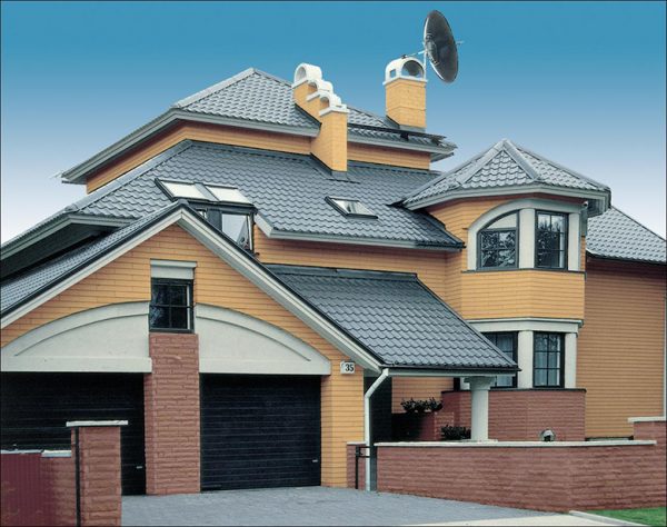 Этот кровельный материал имеет широкую палитру цветов, благодаря чему можно выбрать любой из них, чтобы подходил к общему тону здания.