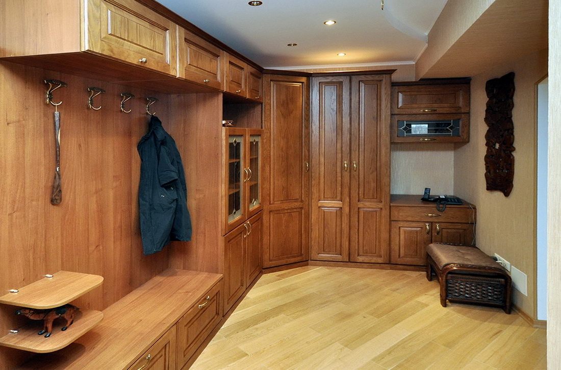 Дерево при всей своей натуральной красоте, к сожалению, не может похвастать такими характеристиками. Поэтому в прихожей его используют редко.