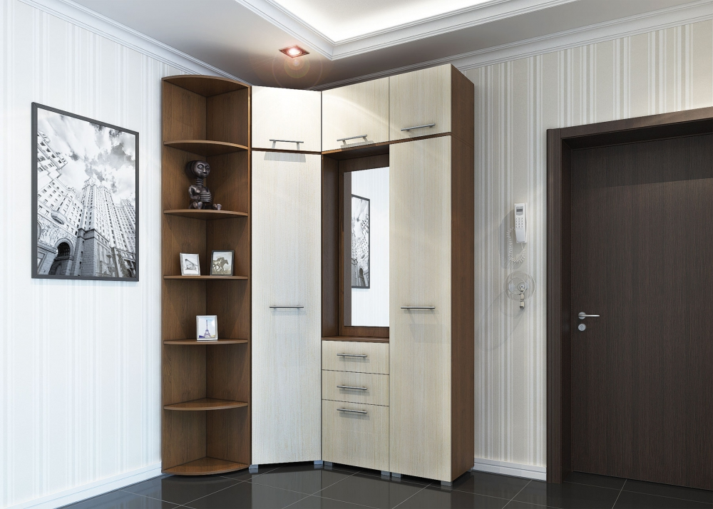 Угловая мебель незаменима при рациональном использовании маленьких площадей, ведь зачастую прихожая имеет скромные размеры. В просторных коридорах, наоборот, можно дать волю фантазии и даже превратить шкаф в гардеробную.