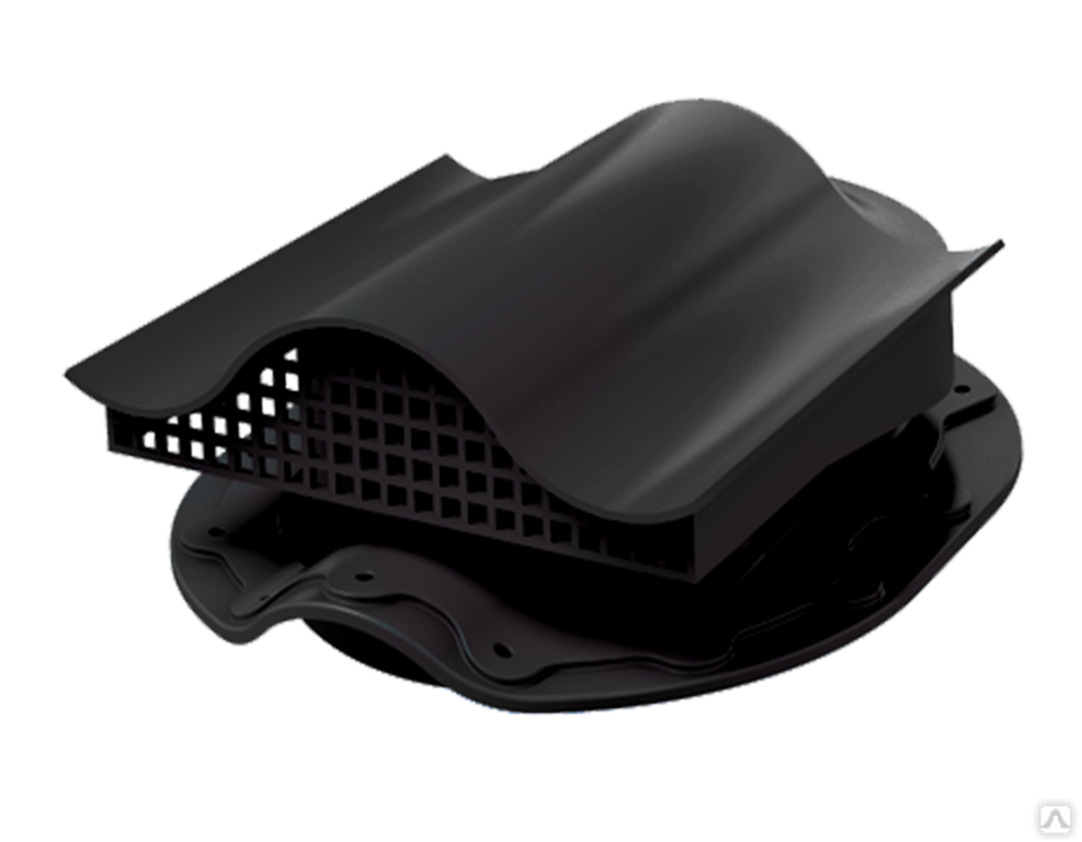 Точечный скатный аэратор имеет плоское основание (юбку), через которое происходит его соединение с кровлей. Основание точечного конькового аэратора – угловое, предназначенное для сопряжения с кровлей в районе ее верхнего горизонтального ребра.