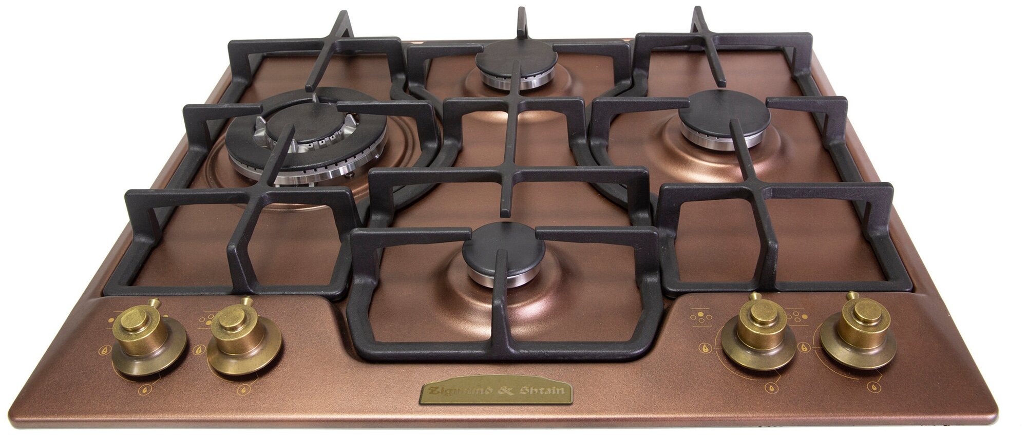 Горелка ВОК. Она присутствует практически во всех моделях панелей (кроме некоторых в ретростиле). WOK-конфорка имеет несколько (2 и 3) рядов пламени разного диаметра. Такое конструкционное решение помогает равномернее прогревать посуду с большим диаметром дна. Это обеспечивает более эффективное приготовление пищи без пригорания в отдельных зонах.