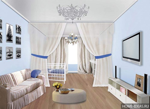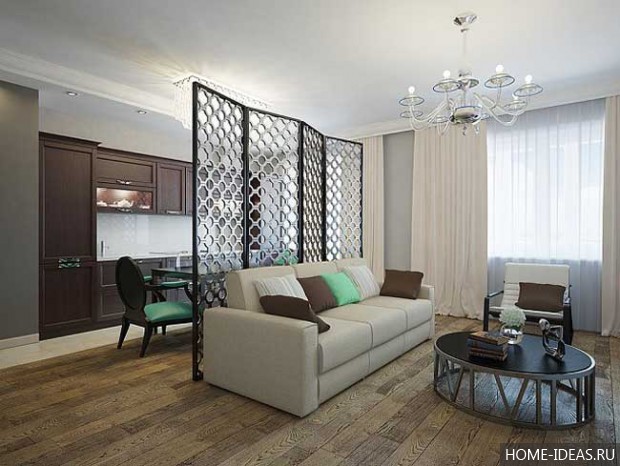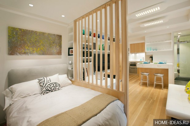 «Провести деление комнаты на две зоны необходимо так, чтобы пространство могло представляться как симбиоз абсолютно обособленных помещений, так и единым целым»