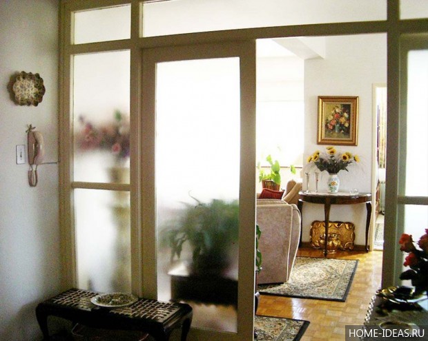 В некоторых ситуациях такое решение невозможно, а одна из комнат остается без естественного освещения. В этом случае лучше всего делать перегородку из цветного или матового стекла, которое сможет изолировать помещение, но будет пропускать свет.