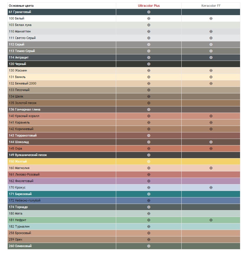 Внимание! В 2017 году изменились названия некоторых цветов затирок