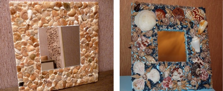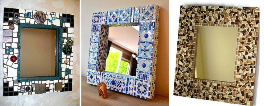На самом деле для отделки зеркальных рам в качестве декора можно использовать: макаронные изделия, трубки из газет, кусочки кафеля, мозаику, ветки, листья и т.д. Если вы не уверены в собственной фантазии, огромное количество идей можно почерпнуть на соответствующих сайтах, пестрящих многообразием фото- и видеоматериалами.