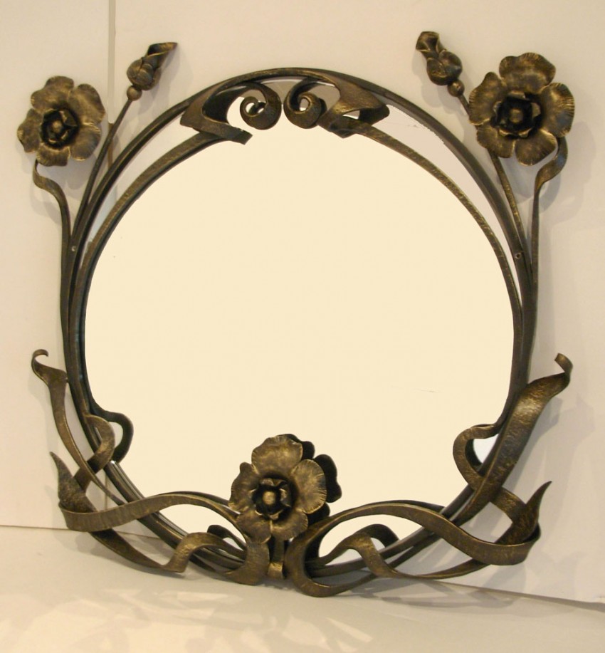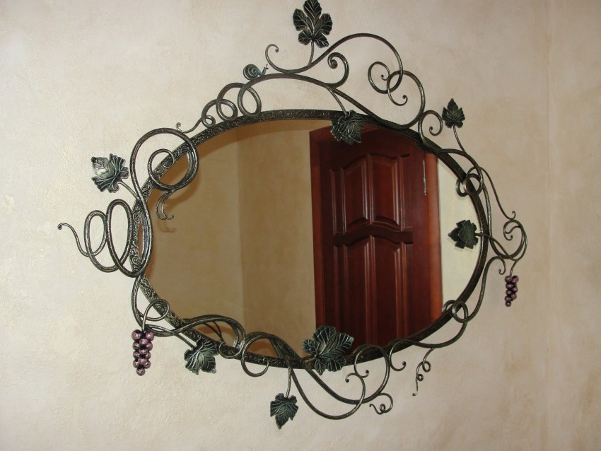 - багеты из металла или кованые элементы составят идеальный тандем с зеркальным полотном. Но для создания зеркала в багетной раме из металла лучше привлечь квалифицированных специалистов, имеющих опыт работы с такими материалами;