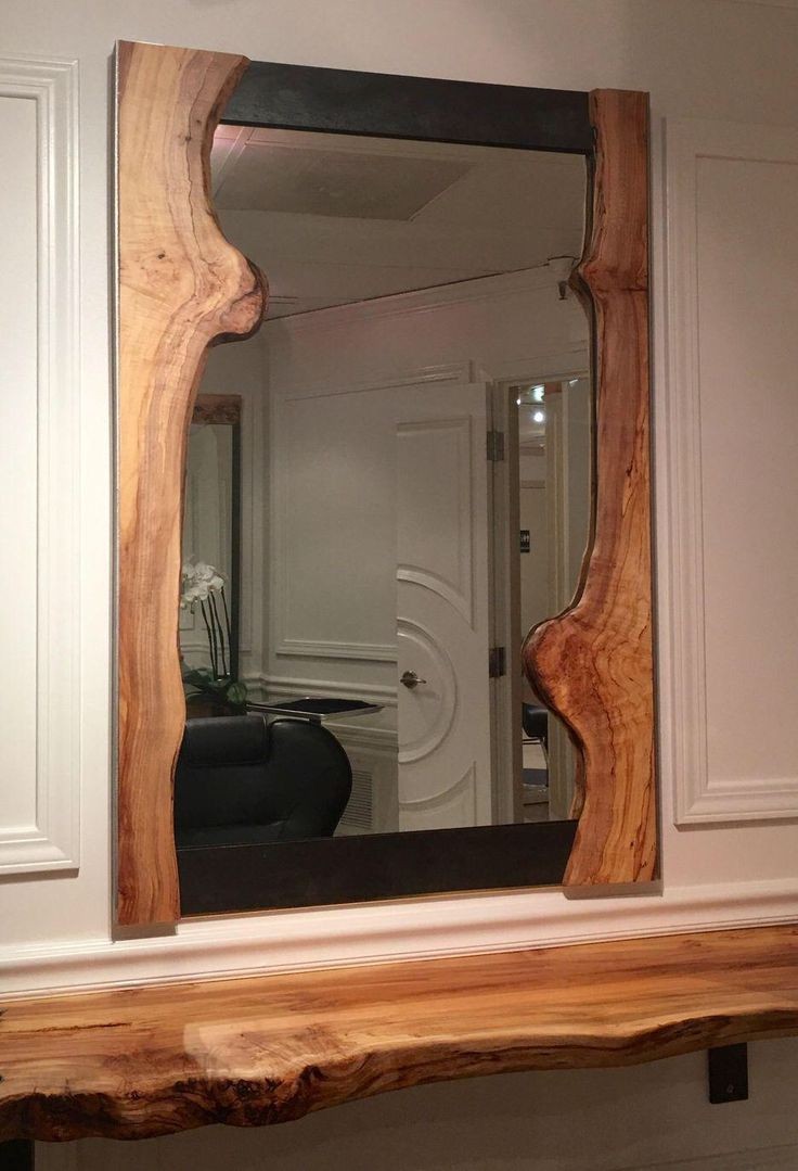Деревянное обрамление само по себе другую структуру, фактурность и расцветку. Для придания неповторимости или стильности зеркалу в деревянной раме достаточно вскрыть поверхность лаком или украсить соответствующими деталями.