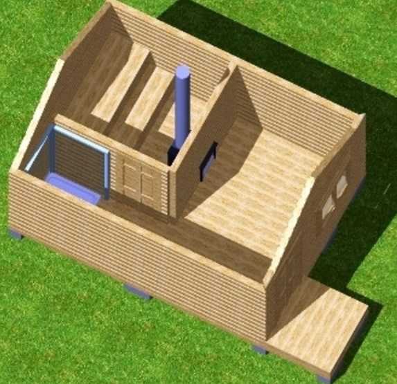 - Краткие сроки и простота в сборке. Следуя плану, такую баню можно построить за пару недель.