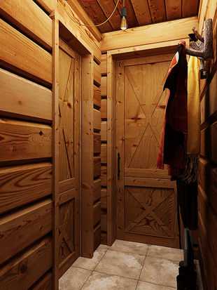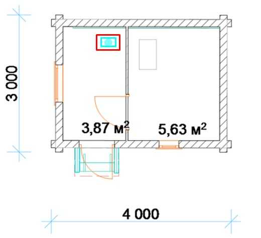 В нем помещение бани делят условно на две комнаты. В первую – предбанник, устанавливается большое окно и дверь, ведущая в помывочную. Предбанник занимает по длине 3, а по ширине 2 метра. Оставшуюся часть площади разделяют между помывочной и парной.