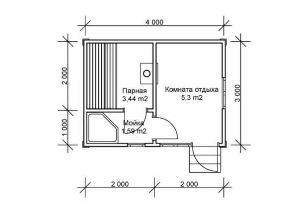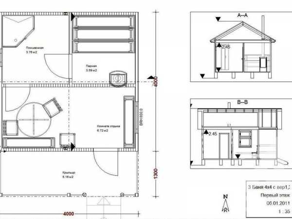 Строительство бани 3 на 4 из бруса или блоков: проект, планировка и фото