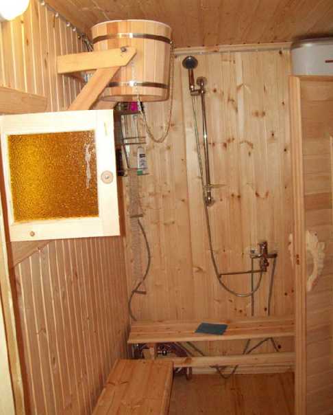 Окна можно прорубить в помывочном отделении и в комнате отдыха, их размер 0,5 х 0,5 или 0,7 х 0,7. Это дает возможность сэкономить на вентиляции и сделать помещение светлым, не используя искусственного освещения.