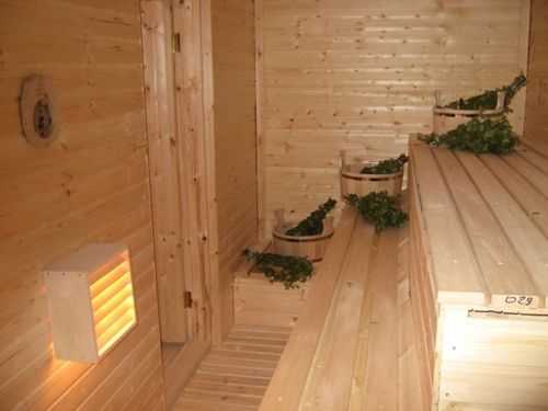 Необходимо максимально внимательно отнестись к внутренней отделке и планировке. Условие расположения нескольких уровней лежаков считается оптимальным вариантом. Минимальная ширина каждого от 40 до 50 см. При этом верхняя полка всегда должна быть немного шире.