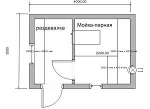 Компенсируется недостаток большим помещением парной и моечного отделения. Здесь позволяется регулировать размеры. Печь размещается в парной. Неплохо, если растапливаться она будет из моечного отделения. В относительно небольших пространствах необходимо сделать качественную вентиляцию. В парной это будет два вытяжных отверстия, а в моечном отделении окно. Дополнительный приток воздуха будет осуществляться за счет естественной вентиляции.