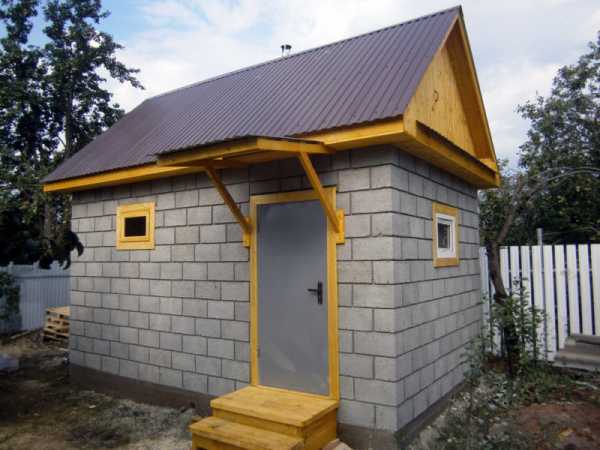 В такой планировке баню можно сделать из кирпича или производных от него материалов. Отлично проявили себя блоки из полистирола или керамзита. У них высокая степень прочности, низкая теплопроводность и достаточный ресурс, позволяющий выстаивать строениям в течение длительного времени. Большие размеры упрощают процесс строительства. Бани из блоков можно возвести под крышу практически за неделю.