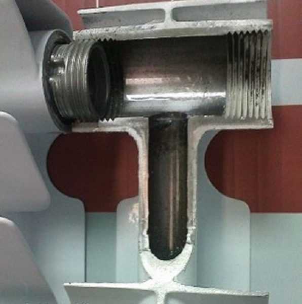 - В секционном радиаторе должны быть установлены высококачественные стальные ниппели, в которых не сорвутся внутренние «усики» при скручивании секций и не «сожраться» резьба. О том, что ниппель некачественный, можно узнать по мягкости металла изготовления.