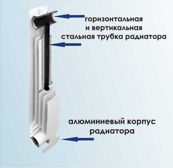 Этот тип батарей отопления состоит из двух основных частей, изготовленных из разных металлов.