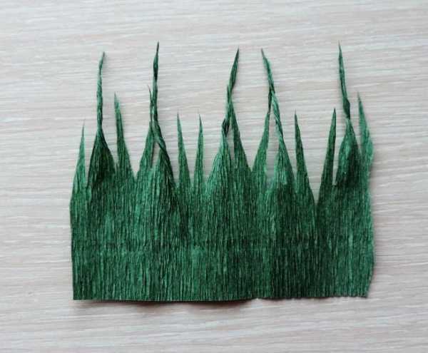 15. Далее вырежьте из зеленой бумаги полоску шириной 15 см и утолщаем ее край, скатав его.