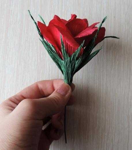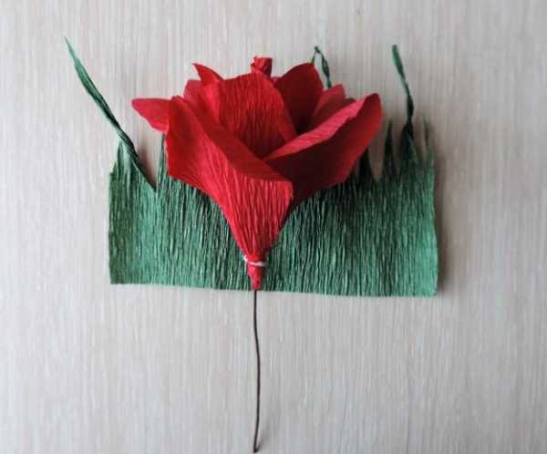 16. Место крепления цветка скройте при помощи полоски зеленой бумаги — цветочного ложа.