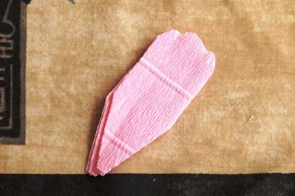 • сперва надо вырезать из гофрированной бумаги 6 лепестков шириной 4 см и высотой — 7 см. Затем — 5 лепестков шириной 6 см и высотой 7 см. После этого надо закруглить края лепестков