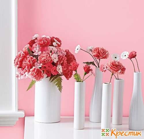 В первую очередь весной в почете первоцветы. Но создавать их нелегко, если не иметь определенных навыков. Поэтому можно обыграть весеннюю тему и в ромашках, герберах и гвоздиках. Тут главное — подобрать нежные пастельные тона самой бумаги.