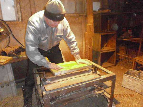- Съемное дно делается шире и собирается из досок в четверть (или другим способом с хорошей герметичностью). Три планки набиваются с таким расчетом, чтобы входить в фальц внизу корпуса. Лицевая сторона остается без планки, для вентиляции. Доски можно взять толще 4 см, это утяжелит дно, но сделает его прочней.