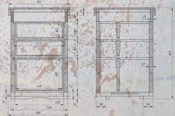 - Из доски 35 мм нарезают заготовки согласно чертежу. Подготавливают места соединения, выбираются фальцы. Заготовки шлифуются.