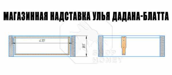 - Надставка (магазин). Устанавливается в период активного медосбора. С помощью особых приемов матке не позволяют откладывать яйца в магазине. В принципе, 2 надставки установленные друг на друга, могут служить вторым корпусом.