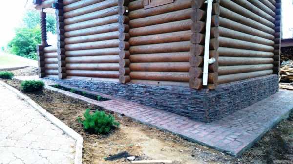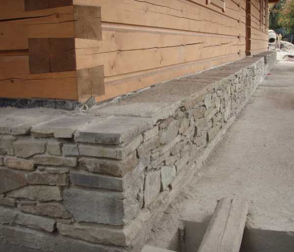 - Для гладких, оштукатуренных стен и для бревенчатых домов лучшим материалом для цоколя считается природный камень.