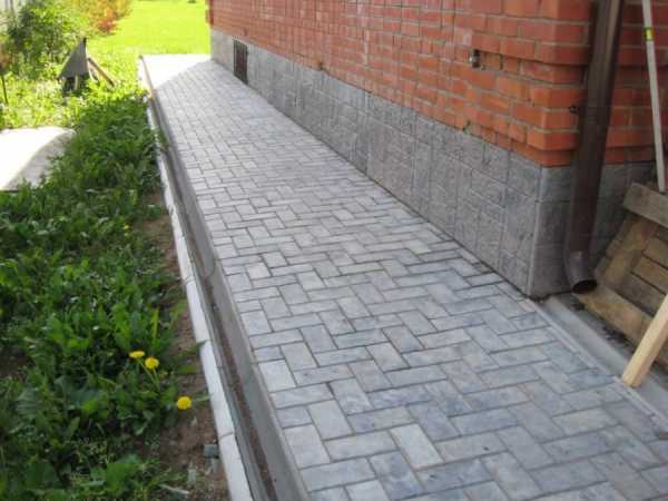 Для защиты от осадков: дождевой и талой воды, стекающей с крыши, вокруг здания заливается бетонная отмостка. Она представляет собой полосу шириной около 1 м, идущую по всему наружному периметру дома. Отмостка должна иметь небольшой уклон наружу, чтобы влага не скапливалась в стыках со стеной.