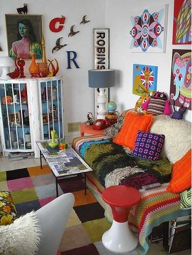 Богемный интерьер этой комнаты собрал, кажется, все самые лакомые и выразительные цвета.