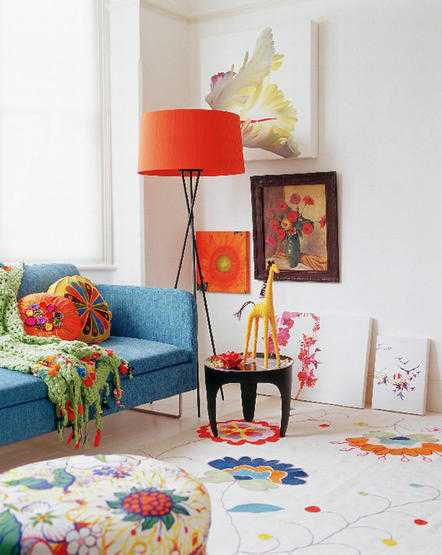 Потрясающая палитра и цветочные мотивы создают неповторимый стиль этой гостиной.