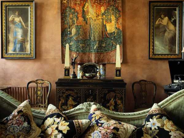 На этот раз дизайнеры были щедры к декору стен, выбрав обои с богатым растительным орнаментом.